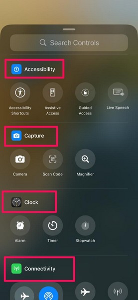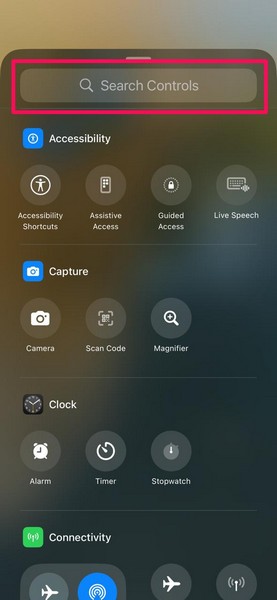 3. Αναζήτηση ελέγχων στο κέντρο ελέγχου στο iOS 18
