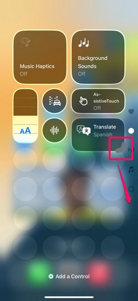 3.Μόλις το κέντρο ελέγχου εισέλθει στην οθόνη προσαρμογής, πατήστε τοΠροσθέστε ένα κουμπί ελέγχουπαρακάτω.