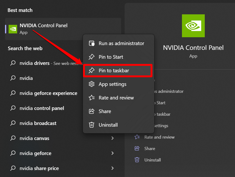 2.Μόλις εμφανιστεί στα αποτελέσματα αναζήτησης, μπορείτε να κάνετε κλικ στοPIN στη γραμμή εργασιώνΕπιλογή στο δεξιό παράθυρο για να προσθέσετε αμέσως το εικονίδιο της εφαρμογής στη γραμμή εργασιών.