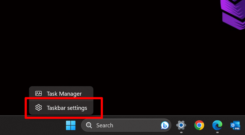 1. Κάντε δεξί κλικ στη γραμμή εργασιώνκαι ανοίξτε τοΡυθμίσεις της γραμμής εργασιώνσελίδα στη συσκευή σας Windows 11.