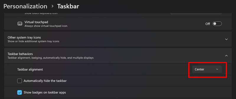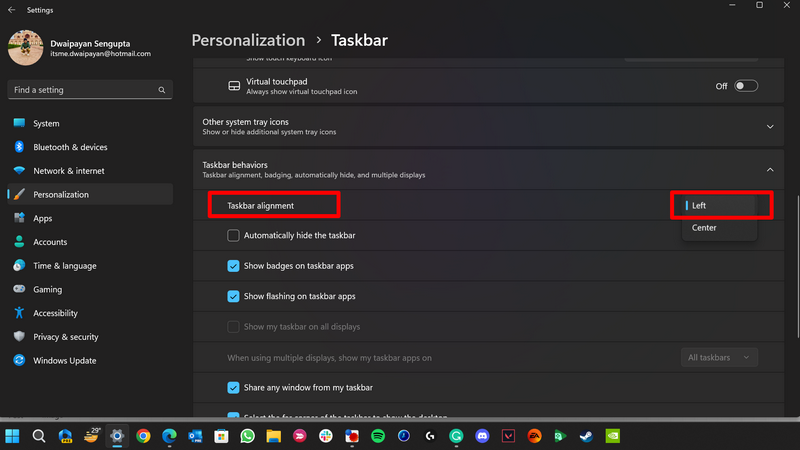 Τώρα, αν σας άρεσε ο αριστερός προσανατολισμός των εικονιδίων της γραμμής εργασιών στην προηγούμενη έκδοση των Windows και δεν σας αρέσει πολύ ο νέος κεντρικός προσανατολισμός στα Windows 11, μπορείτε πραγματικά να μετακινήσετε τα εικονίδια μέχρι τα αριστερά.