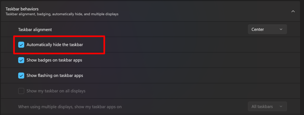 Τώρα, αν δεν γνωρίζατε ήδη, μπορείτε να φτιάξετε τη γραμμή εργασιών στο Windows 11 PC ή το φορητό υπολογιστή σας αυτόματα κρύβεται όταν δεν χρησιμοποιείται. Έχουμε ήδη αφιερωμένο άρθρο σχετικά με τον τρόπο αυτόματης γραμμής της γραμμής εργασιών.