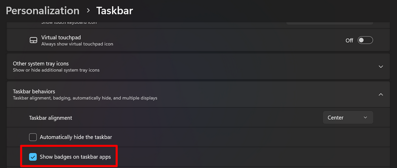 Εάν θέλετε να δείτε σήματα ειδοποίησης για εφαρμογές που βρίσκονται στη γραμμή εργασιών του υπολογιστή σας Windows 11 ή του φορητού υπολογιστή σας, μπορείτε να τους ενεργοποιήσετε από τη σελίδα ρυθμίσεων της γραμμής εργασιών. Ακολουθήστε τα βήματα παρακάτω για να εμφανίσετε ή να αποκρύψετε κονκάρδες για εικονίδια γραμμής εργασιών στις συσκευές των Windows: