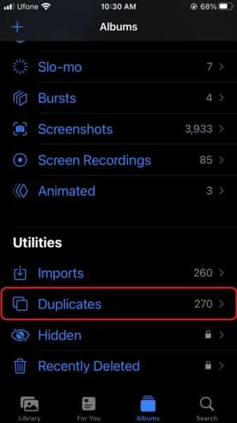 Με το iOS 16, η εφαρμογή Native Photos μπορεί να εντοπίσει διπλές φωτογραφίες και βίντεο στη βιβλιοθήκη σας επιτρέποντάς σας να το διατηρήσετε καθαρό και να διαχειριστείτε το χώρο αποθήκευσης. Όλα τα διπλότυπα που ανιχνεύει η συσκευή σας στη βιβλιοθήκη σας διατηρούνται σε ένα νέο άλμπουμ διπλότυπων στο τμήμα Utilities. Από εκεί, μπορείτε εύκολα να διαχειριστείτε τα αντίγραφα.