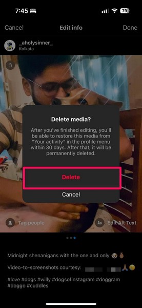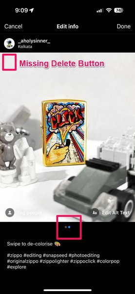 Γιατί δεν υπάρχει κουμπί διαγραφής για εικόνες/βίντεο στην ανάρτηση του Instagram Carousel;