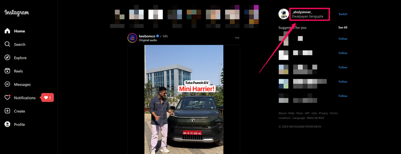 Για αυτή την επίδειξη, χρησιμοποιήσαμε το Microsoft Edge σε ένα φορητό υπολογιστή των Windows 11. Μπορείτε να χρησιμοποιήσετε τα παρακάτω βήματα για να διαγράψετε μια μοναδική εικόνα ή βίντεο από τις αναρτήσεις σας στο Instagram Carousel μέσω οποιουδήποτε υποστηριζόμενου προγράμματος περιήγησης ιστού σε έναν υπολογιστή Windows ή Mac: