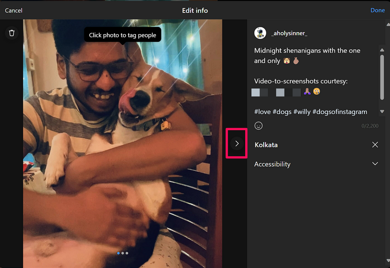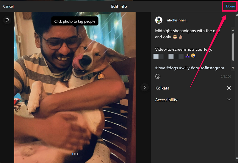 Διαγραφή εικόνας/βίντεο από το Instagram Carousel Post χρησιμοποιώντας το πρόγραμμα περιήγησης στο Web