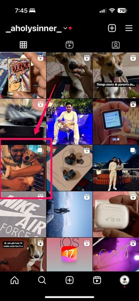 3. Εντοπίστε την ανάρτηση καρουσέλπου περιλαμβάνει την εικόνα/βίντεο που θέλετε να διαγράψετε καιΠατήστε το για να ανοίξετε.