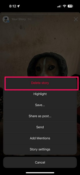 5. Επιβεβαιώστε τη δράση σαςΣτην ακόλουθη προτροπή και η επιλεγμένη εικόνα ή βίντεο θα διαγραφεί από την ιστορία σας.