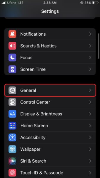 - Στην εφαρμογή Ρυθμίσεις, μετακινηθείτε προς τα κάτω και πατήστεΓενικός.