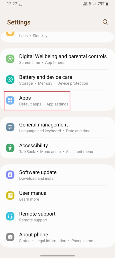 1.Ανοίγω τοΡυθμίσειςεφαρμογή στο τηλέφωνό σας Samsung και πατήστεΕφαρμογές.