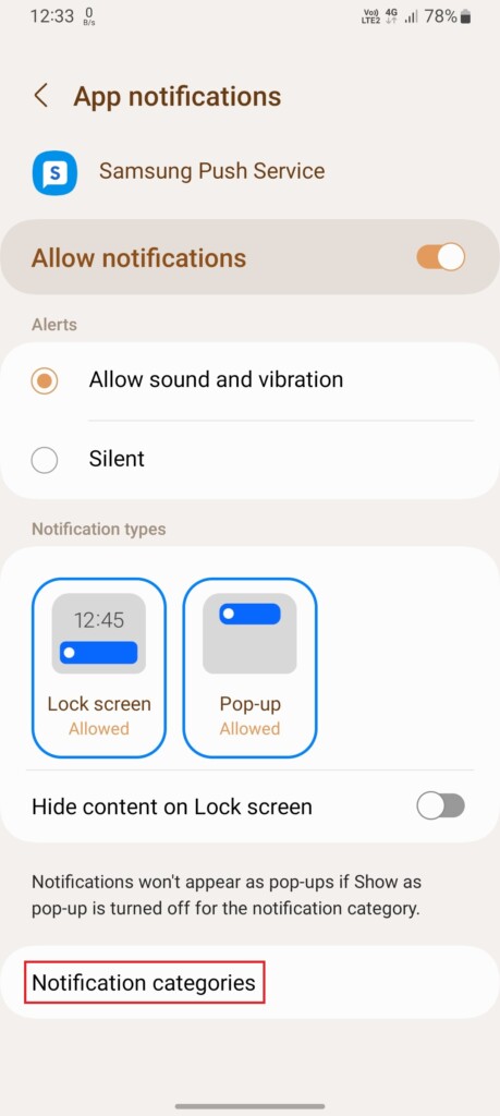 5.Στην επόμενη οθόνη, πατήστεΚατηγορίες ειδοποίησης.
