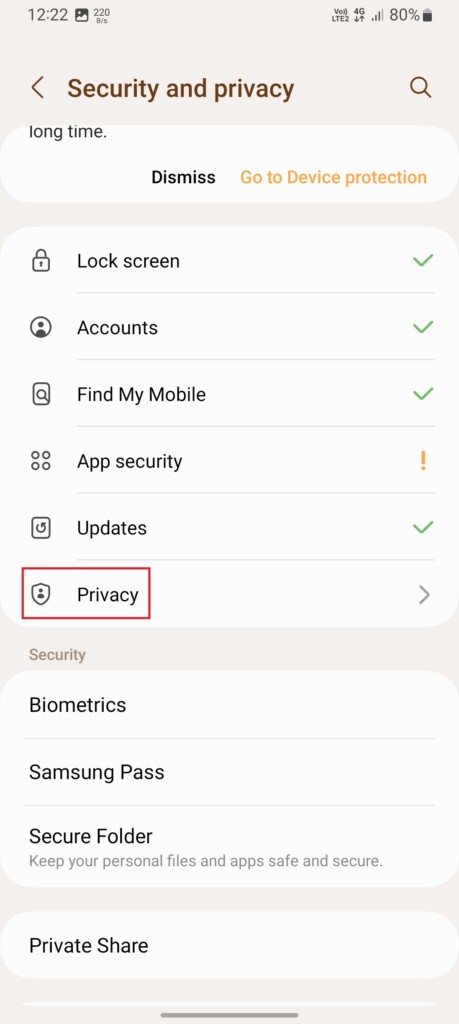 1.Ανοίγω τοΡυθμίσειςεφαρμογή στο τηλέφωνό σας και πατήστεΑσφάλεια και ιδιωτικότητα.