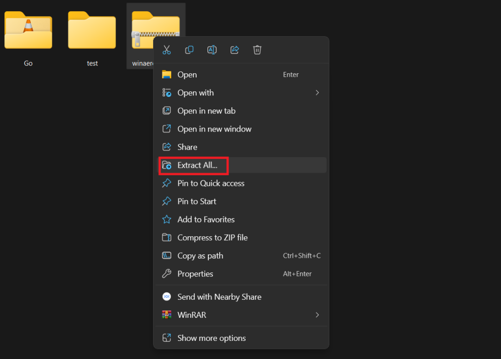 4.Κάντε δεξί κλικ στοWinaerotweakerΦάκελος φερμουάρ και επιλέξτε τοΕκχύλισμαόλοιεπιλογή.