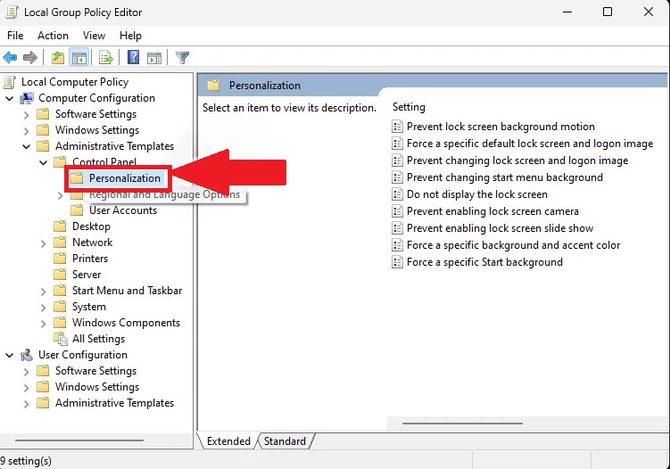 Computer Configuration > Administrative Templates > Control Panel > Personalization