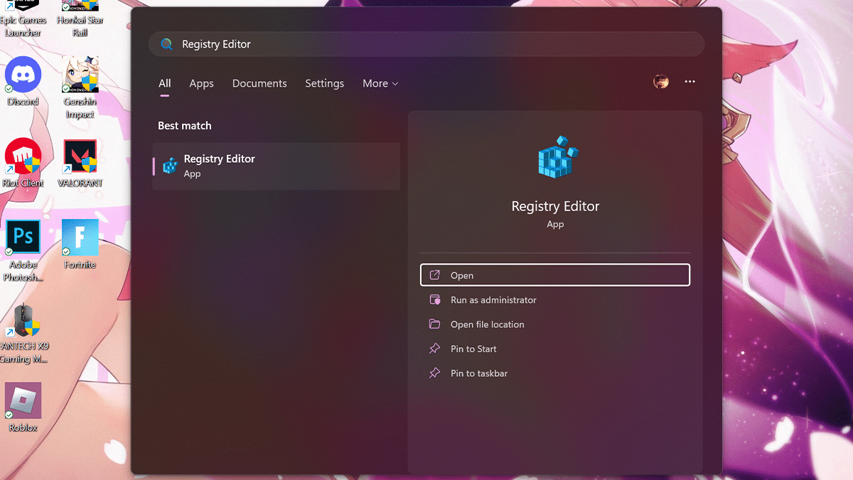 - ΑνοιχτόΑρχή> αναζήτηση γιαΣυντάκτης μητρώου> Κάντε κλικ στοΑνοιχτόκουμπί.