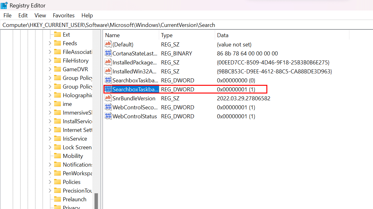 - Κάντε διπλό κλικ στοSearchBoXtaskBarmodeκλειδί.