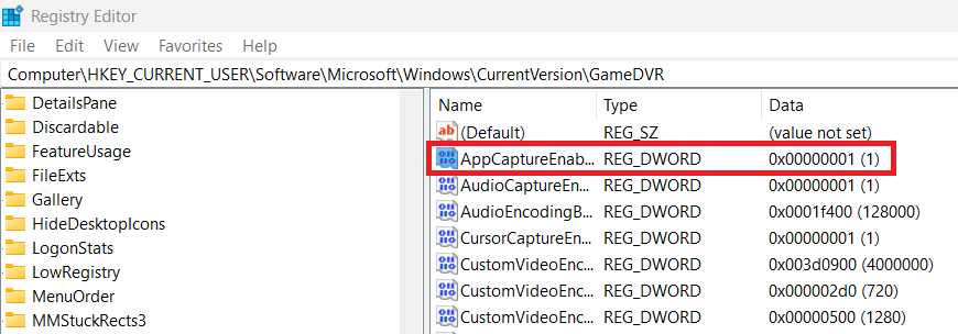 ComputerHKEY_CURRENT_USERSOFTWAREMicrosoftWindowsCurrentVersion GameDVR4.ΣτοΚακόφάκελος, κάντε διπλό κλικ στοAppCaptureEnabledεπιλογή.