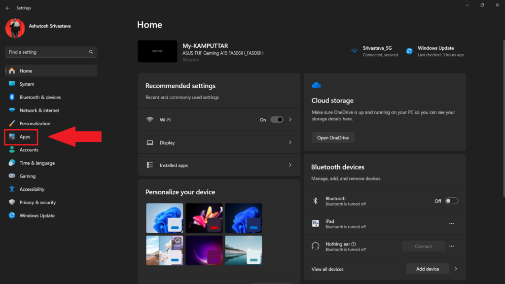 1.ΤύποςΝίκη+εγώστο πληκτρολόγιο για να ανοίξετε τοΡυθμίσειςεφαρμογή.