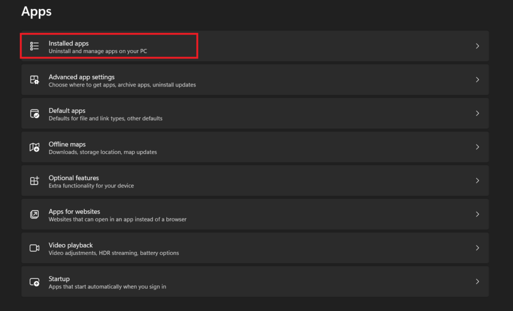 3.Κλικ στοΕγκατεστημένες εφαρμογέςστις ρυθμίσεις εφαρμογών.
