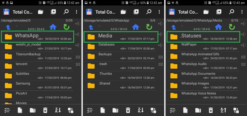 Ανοίξτε το "Manager File"εφαρμογή και φροντίστεΕνεργοποιήστε την επιλογή "εμφάνιση κρυμμένων φακέλων". Μεταβείτε σε αυτό το root του φακέλου στη συσκευή σας "Whatsapp> media> .statuses"Εκεί θα βρείτε όλα τα βίντεο και τις φωτογραφίες που εμφανίζονται στην καρτέλα" Κατάσταση "του WhatsApp. Μπορείτε να επιλέξετε και να αντιγράψετε τα αρχεία βίντεο/φωτογραφιών στην κάρτα SD που θέλετε να αποθηκεύσετε μόνιμα.