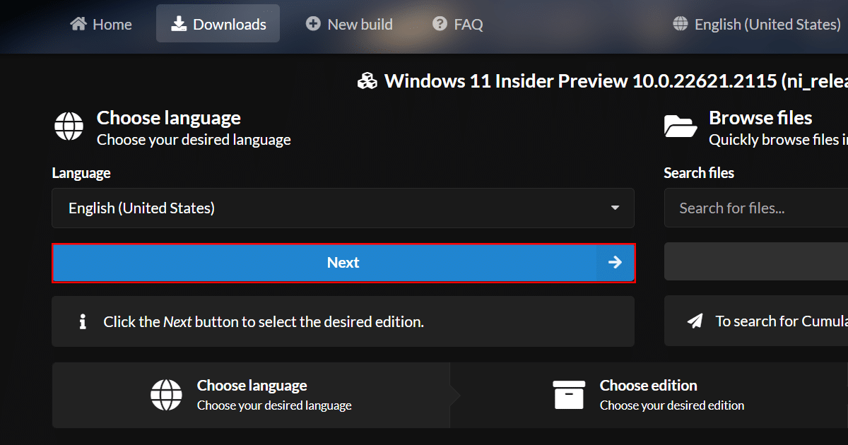 - Επιλέξτε το ""Προεπισκόπηση Windows 11 Insider"Για να κατεβάσετε το τελευταίο αρχείο ISO (x64) για την κατασκευή 22621.