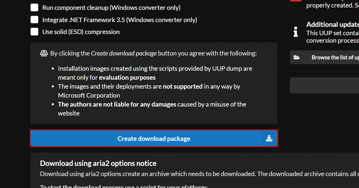 - Κάντε κλικ στο ""Δημιουργία πακέτου λήψης"Κουμπί.