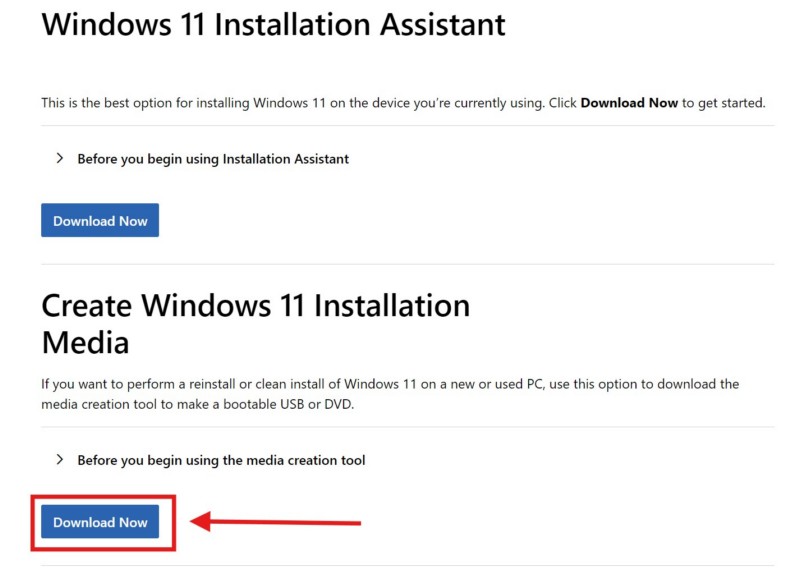 2.Κάτω από τοΔημιουργία μέσων εγκατάστασης των Windows 11Ενότητα, κάντε κλικ στοΛήψη τώρακουμπί.