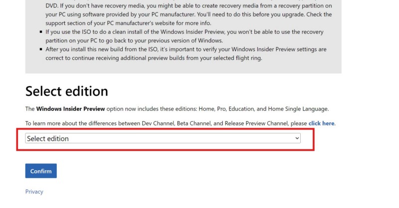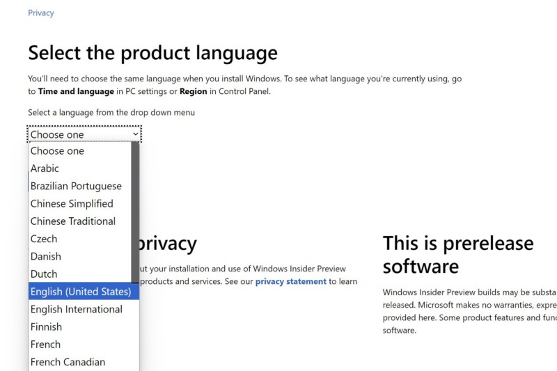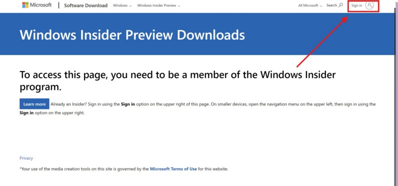 1.Χρησιμοποιήστε αυτόν τον σύνδεσμοΓια να ανοίξετε τοΣελίδα λήψης προεπισκόπησης Windows Insiderμε ένα πρόγραμμα περιήγησης ιστού.