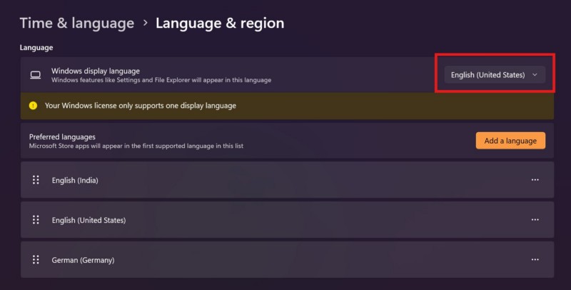 5.Λάβετε υπόψη ότι αυτόΗ γλώσσα του προϊόντος πρέπει να είναι η ίδια με την κύρια γλώσσαΡυθμίστε στοΡυθμίσεις γλώσσας και περιοχήςστο Windows 11 PC ή το φορητό υπολογιστή σας.