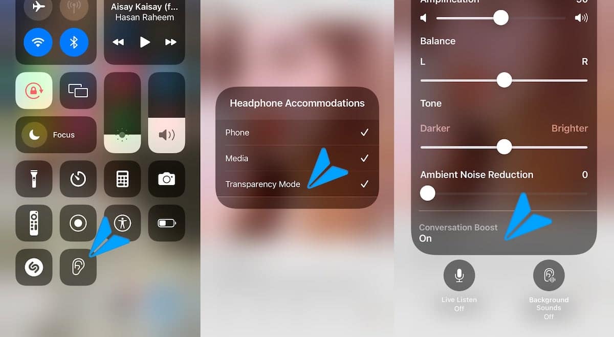 Η ενίσχυση της συνομιλίας είναι μια διαδικασία τριών σταδίων μέσω της εφαρμογής ρυθμίσεων iPhone και του κέντρου ελέγχου.
