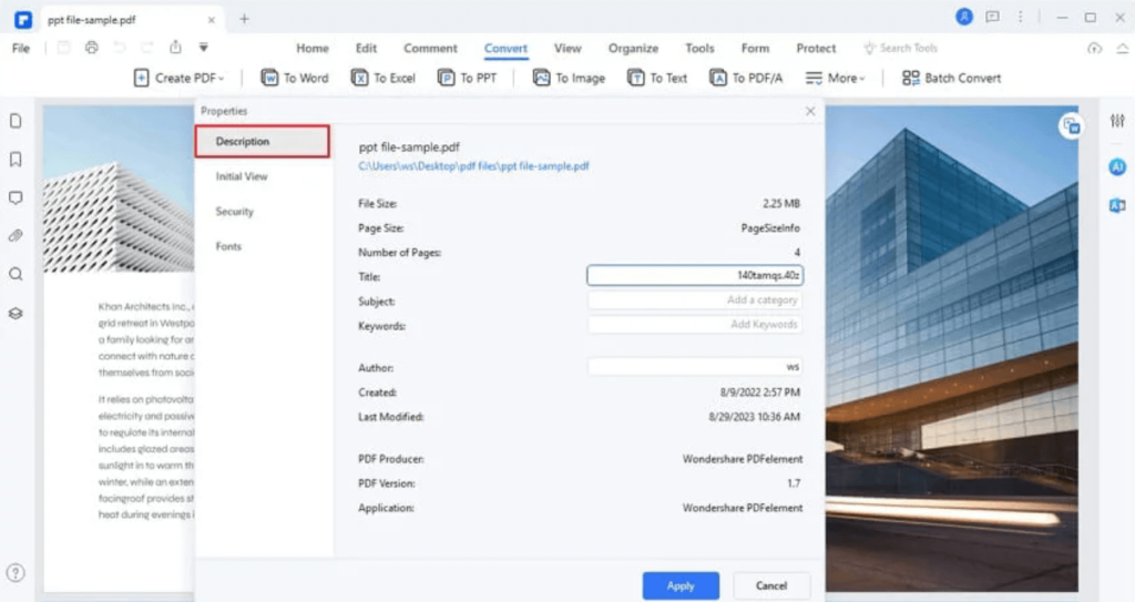 - Συνέπεια της επωνυμίας:Η επεξεργασία του τίτλου, του συντάκτη και των πληροφοριών των αρχείων PDF σας μπορεί να τα καταστήσει πιο συνεπή με το branding σας.