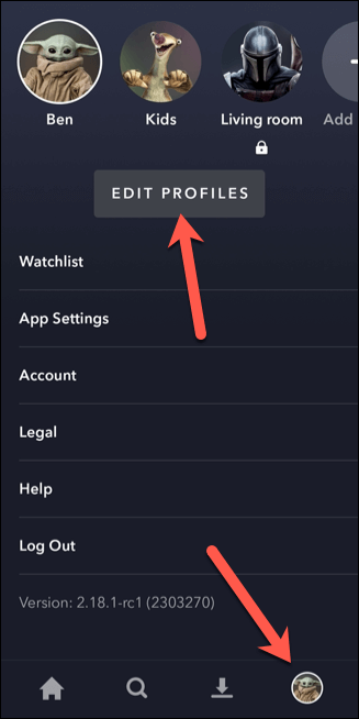 - Ξεκινήστε ανοίγοντας την εφαρμογή Disney Plus και επιλέγοντας το εικονίδιο του προφίλ σας στο κάτω μέρος-δεξιά.
