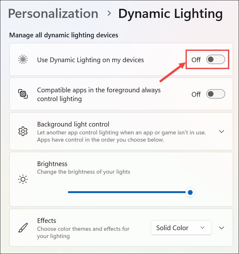 Πώς μπορώ να ενεργοποιήσω τους ελέγχους φωτισμού RGB στα Windows 11;