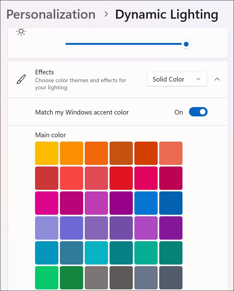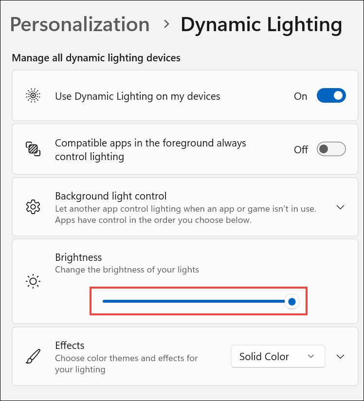Με το δυναμικό φωτισμό, τα Windows 11 παίρνουν αυτήν την εξατομίκευση σε ένα εντελώς νέο επίπεδο, επιτρέποντας στους χρήστες να επεκτείνουν το χρώμα τους σε παράθυρα στις συσκευές τους RGB. Αυτό σημαίνει ότι τα χρώματα στην οθόνη σας μπορούν να συγχρονιστούν άψογα με τον φωτισμό RGB στα περιφερειακά σας.