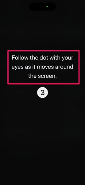 5.Τώρα, θα δείτεμια μαύρη οθόνη με τις ακόλουθες οδηγίες: Ακολουθήστε την κουκίδα με τα μάτια σας καθώς κινείται γύρω από την οθόνη.