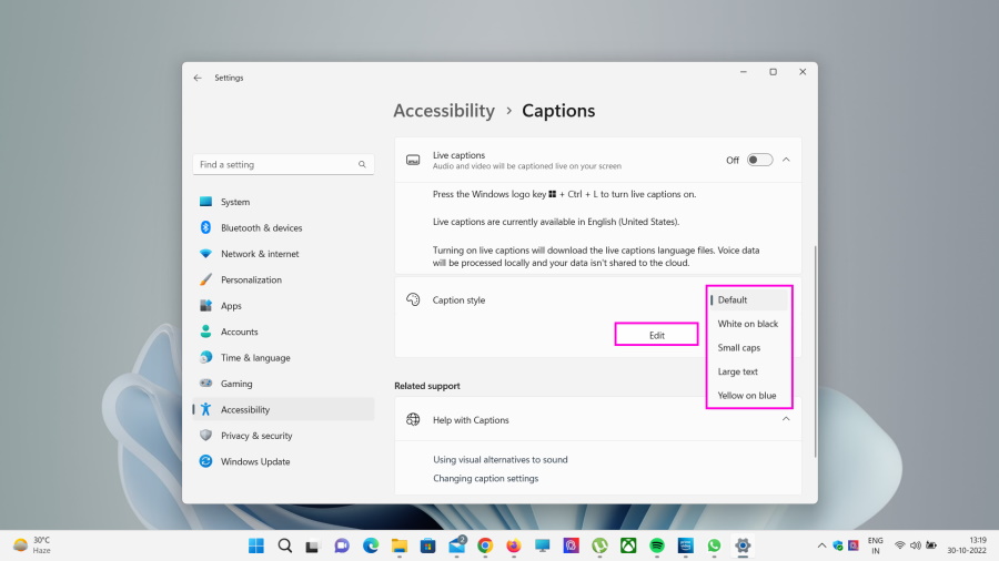 Αφού ενεργοποιήσετε τις ζωντανές λεζάντες στα Windows 11, είναι καιρός να τις προσαρμόσετε. Μπορείτε να αλλάξετε το κείμενο, τις γραμματοσειρές και άλλες πτυχές ανάλογα με τις προτιμήσεις σας. Ακολουθήστε τα παρακάτω βήματα.