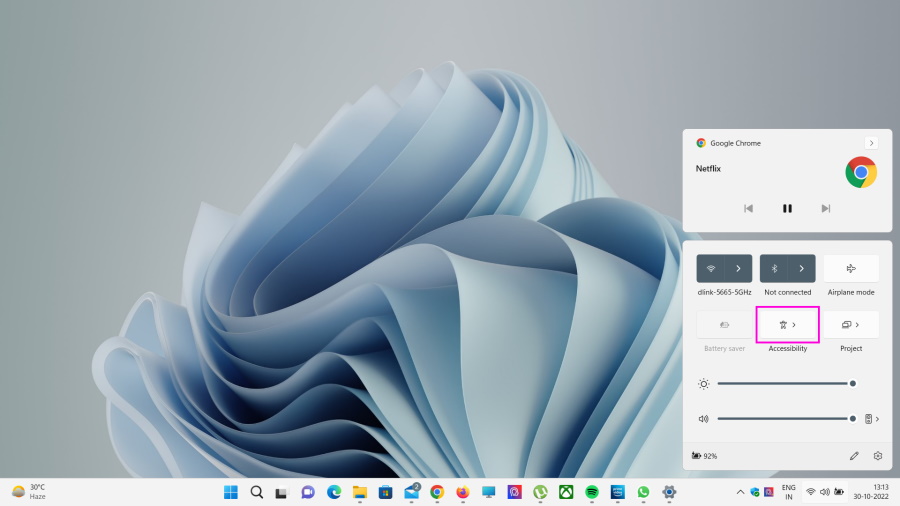 6.Τώρα, ανοίξτε γρήγορες ρυθμίσεις και κάντε κλικ στοΠλακίδια προσβασιμότητας.