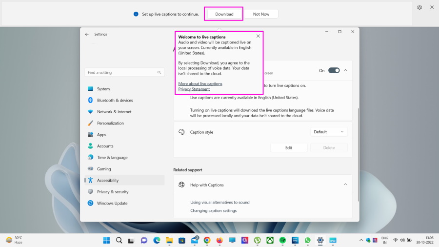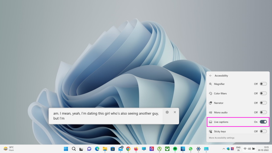 Οι ζωντανές λεζάντες είναι μια νέα δυνατότητα προσβασιμότητας στα Windows 11. Η Microsoft έριξε αυτό το νέο χαρακτηριστικό με τη νέα ενημέρωση 22H2. Η λειτουργία αναλύει αυτόματα τον ήχο που παίζει στον υπολογιστή σας και δημιουργεί ή δημιουργεί λεζάντες.
