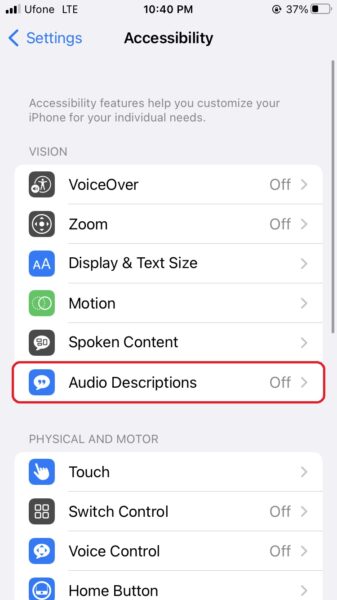 Εδώ είναι πώς να ενεργοποιήσετε τις περιγραφές ήχου στο iPhone: