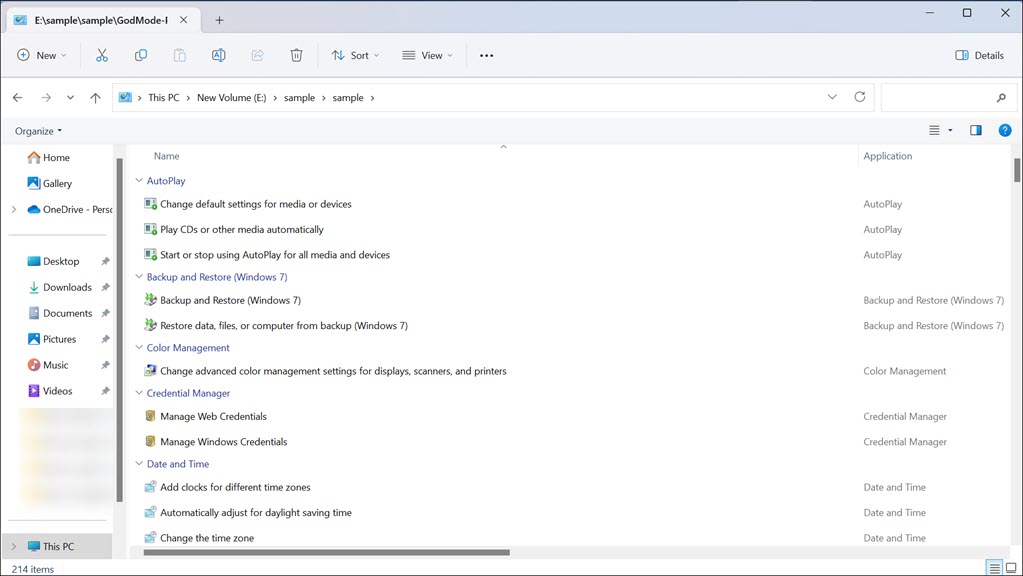 Αντ 'αυτού, σας χορηγεί πρόσβαση σε ένα εξειδικευμένο φάκελο που συγκεντρώνει ένα ευρύ φάσμα ρυθμίσεων και επιλογών από διάφορα μέρη του πίνακα ελέγχου και πέραν αυτού. Όταν ενεργοποιείτε τη λειτουργία του Θεού, κερδίζετε έναν εκτεταμένο κατάλογο κατηγοριοποιημένων ρυθμίσεων, οργανωμένα με τακτοποιημένα σε μια εύκολη στη διάταξη διασύνδεσης.
