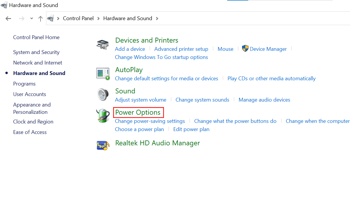 - Κλικ στοΕπιλογές τροφοδοσίας.