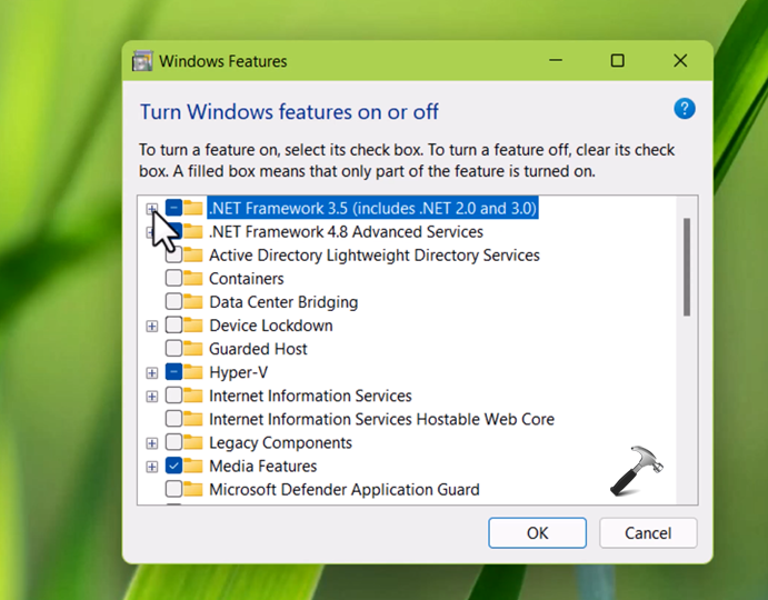 2.Ελεγχος.NET Framework 3.5 (περιλαμβάνει .NET 2.0 και 3.0). Κάντε κλικ στο OK.