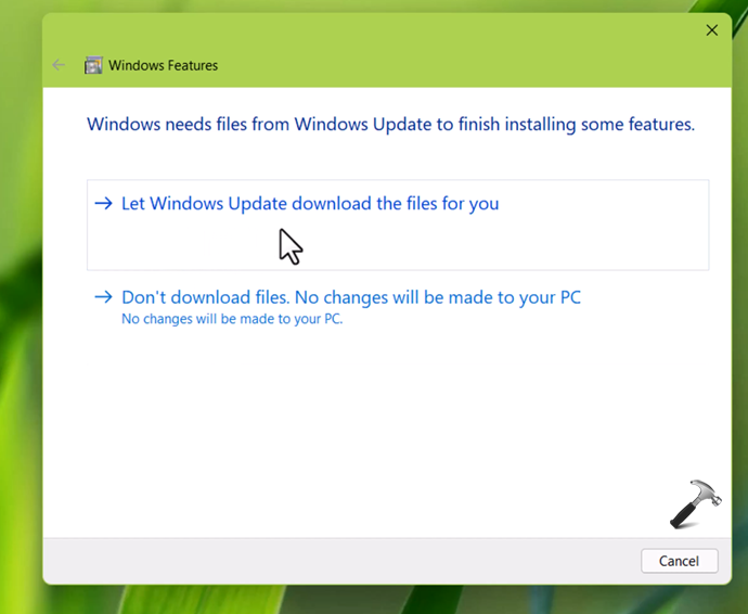 3.Στο επόμενο παράθυρο, επιλέξτε την επιλογήΑφήστε τα Windows Update Κατεβάστε τα αρχεία για εσάς.