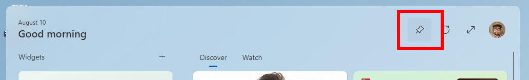 - Όταν τελειώσετε, την επόμενη φορά που θα ανοίξετε το board widgets, θα βρείτε ένα νέο "Καρφίτσα"Κουμπί στο επάνω δεξιά. Όταν κάνετε κλικ στο"Καρφίτσα"Κουμπί, η πλακέτα θα παραμείνει ανοιχτό ακόμα και όταν μεταβείτε σε άλλη εφαρμογή.