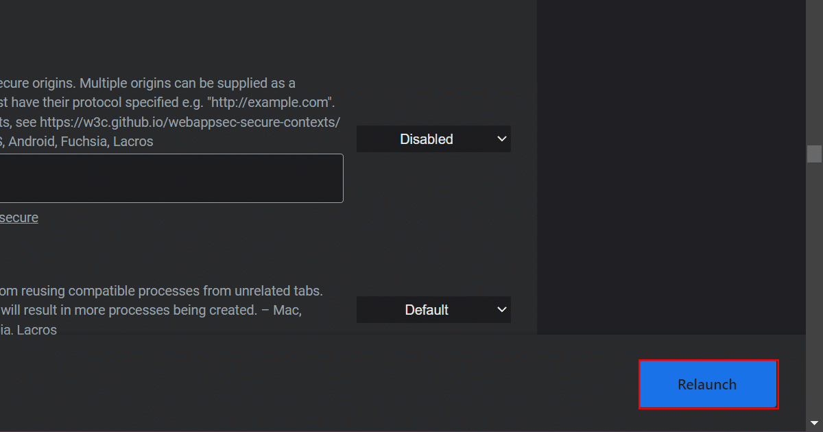 - Κάντε κλικ στο ""Ξεκίνησα ξανά"Κουμπί για να επανεκκινήσετε το Chrome.