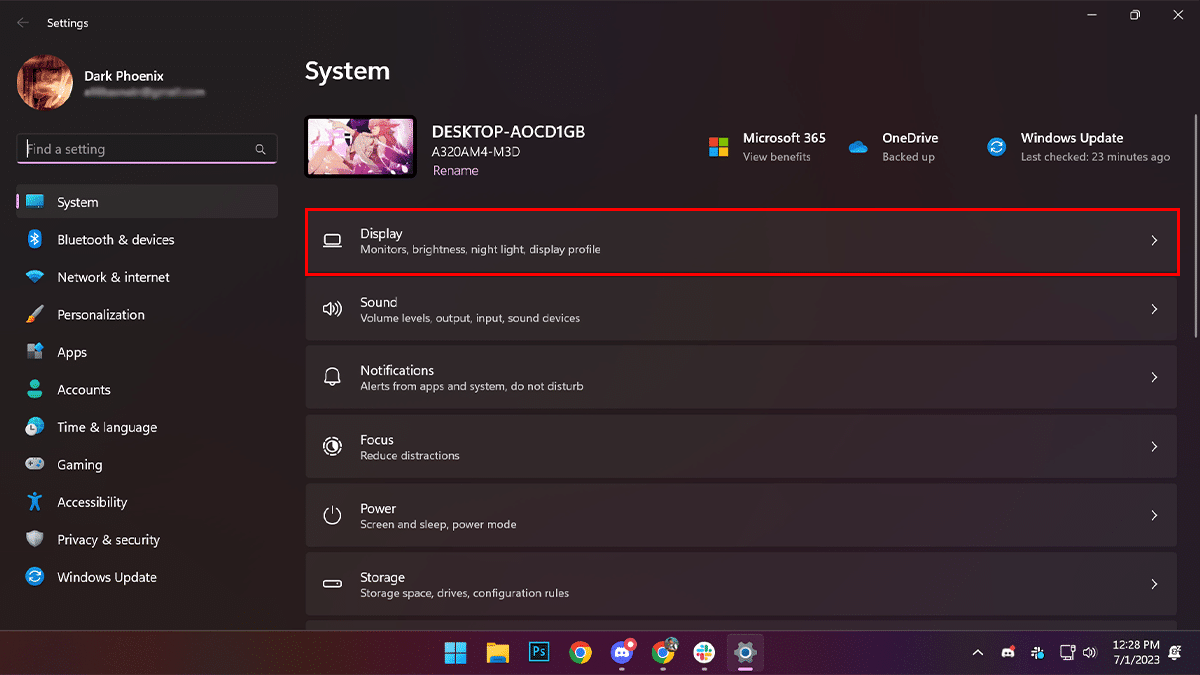 - Κλικ στοΣύστημακαι κάντε κλικ στο κουμπίΕπίδειξη.