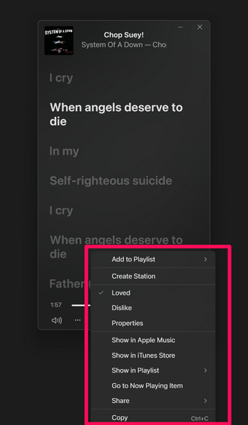 Το Mini Player στην εφαρμογή Apple Music στα Windows 11 είναι ένα εξαιρετικό εργαλείο για την εύκολη πρόσβαση σε διάφορες λειτουργίες αναπαραγωγής, ελέγξτε την ένταση, διαχειριστείτε την ουρά τραγουδιού σας και κάνετε διάφορα άλλα πράγματα. Ελέγξτε τους δείκτες που αναφέρονται παρακάτω για να δείτε τι μπορείτε να κάνετε με το Mini Player της Apple Music στο Windows 11 PC ή το φορητό υπολογιστή σας: