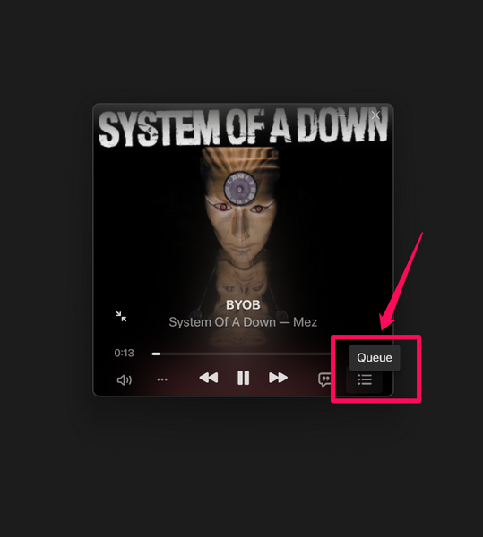 7.Μπορείτε να κάνετε κλικ στοΟυράκουμπί προςΑνοίξτε τη λίστα των επερχόμενων τραγουδιών.