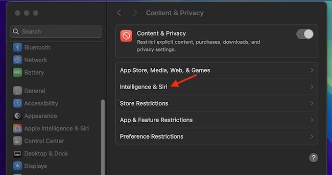 - Μεταβείτε στοΝοημοσύνη & Siriτμήμα.